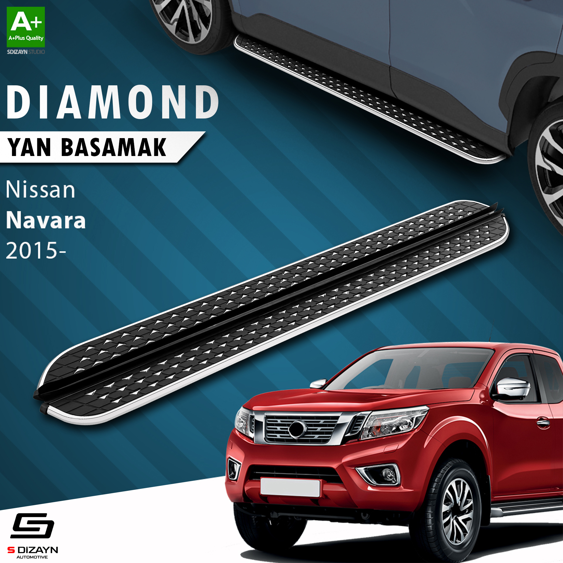 S-Dizayn Nissan Navara 3 Diamond Krom Yan Basamak 203 Cm 2015 Üzeri A+ Kalite
