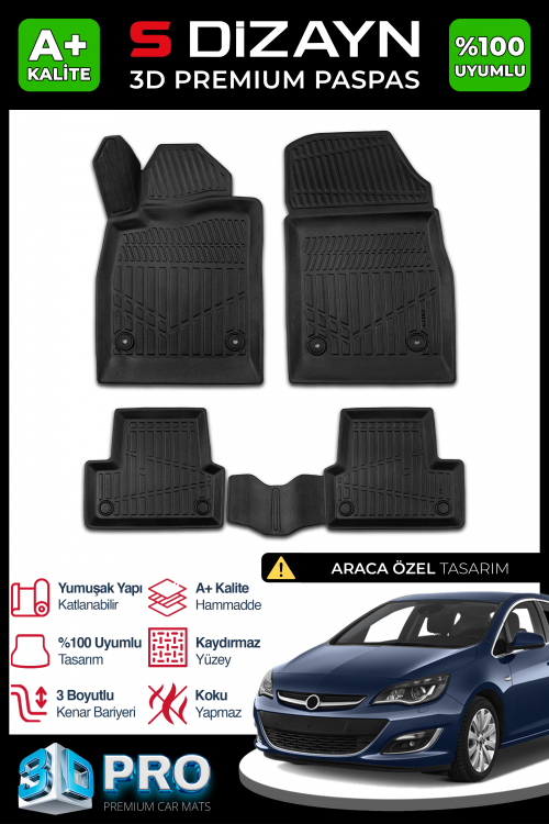 S-Dizayn Opel Astra J 3D Pro Havuzlu Paspas 2012-2020 Üzeri A+ Kalite