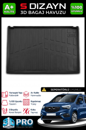 S-Dizayn Opel Combo E Seperatörsüz 3D Pro Bagaj Havuzu 2019 Üzeri A+ Kalite
