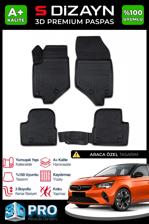 S-Dizayn Opel Corsa F 3D Pro Havuzlu Paspas 2019 Üzeri A+ Kalite