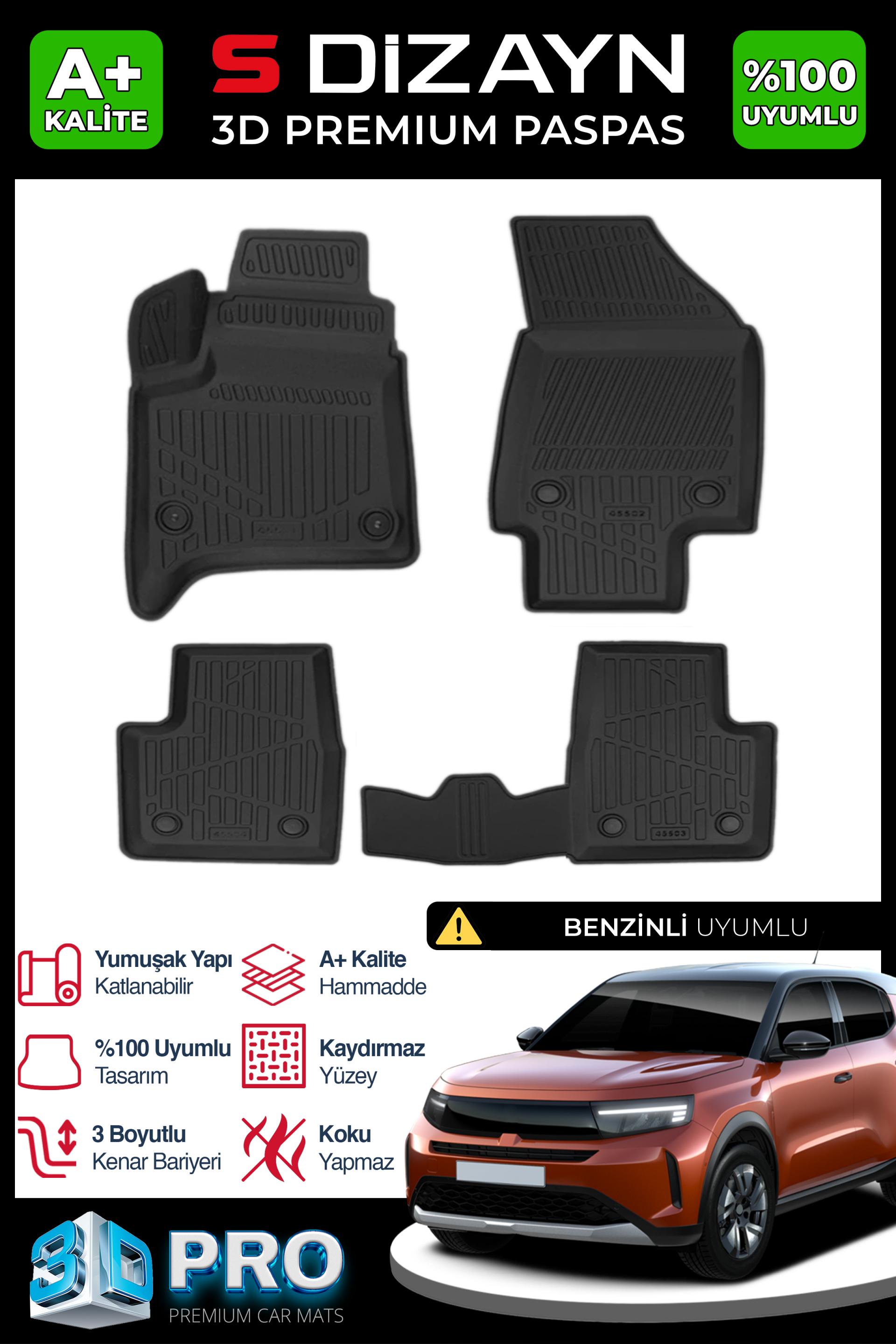 "3D Havuzlu Paspas," her araç modeli için özel olarak ölçülendirilmiş ve tasarlanmıştır. Bu sayede, aracınızın zeminine tam uyum sağlar, boşluk bırakmaz ve kaymadan güvenli bir kullanım sunar.