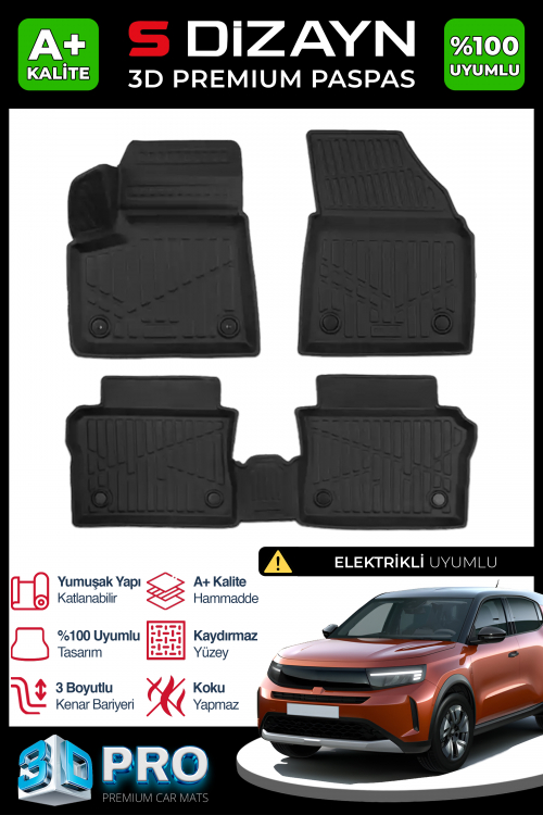 S-Dizayn Opel Frontera Elektrikli 3D Pro Havuzlu Paspas 2024 Üzeri A+ Kalite