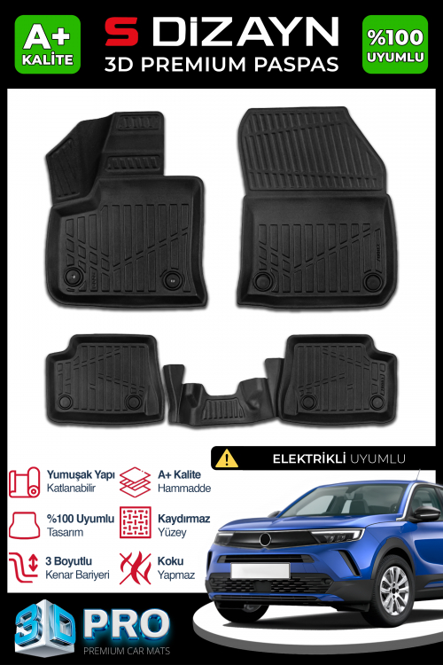 S-Dizayn Opel Mokka Elektrikli 3D Pro Havuzlu Paspas 2021 Üzeri A+ Kalite