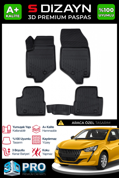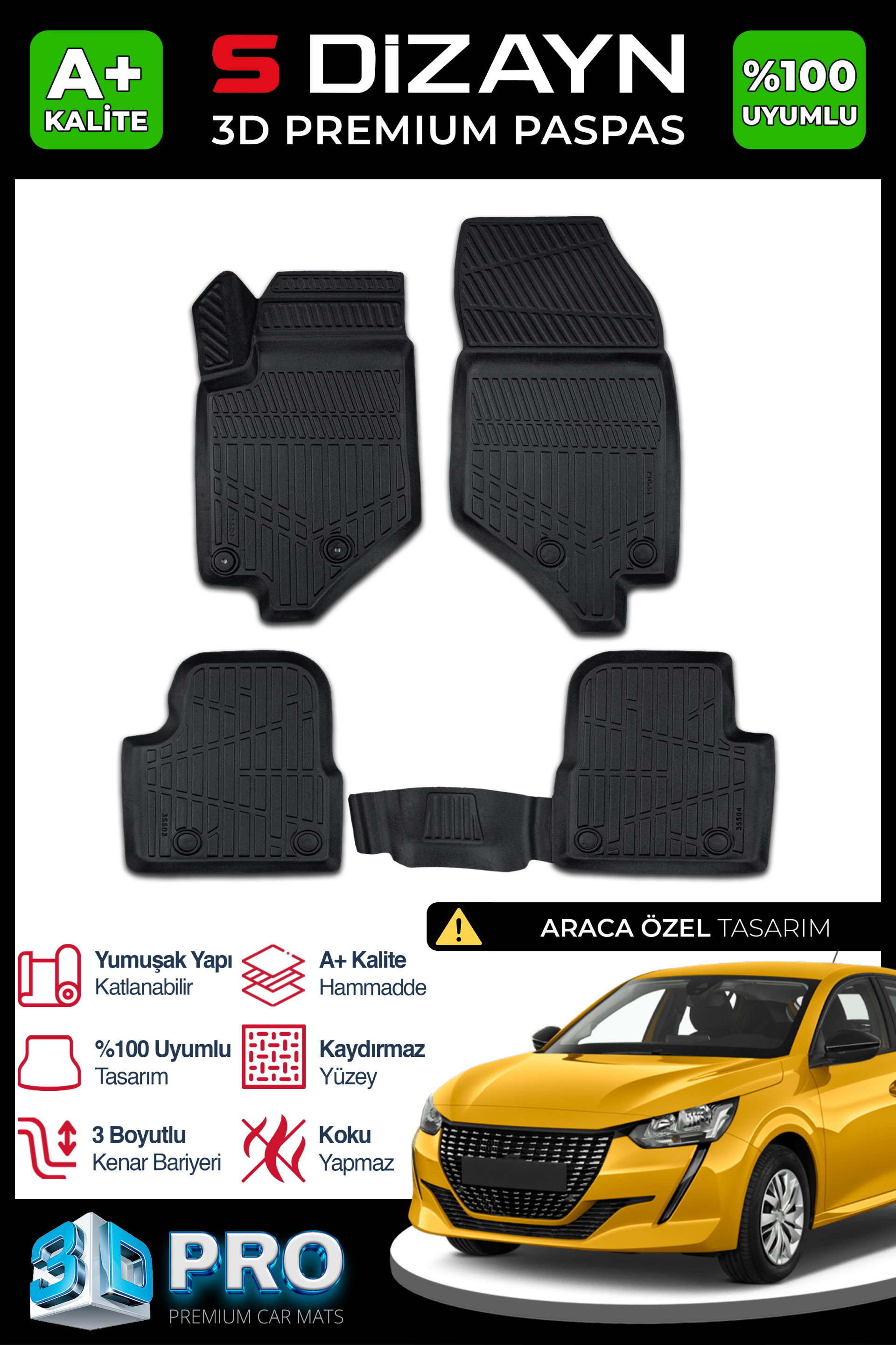 S-Dizayn Peugeot 208 2 3D Pro Havuzlu Paspas 2019 Üzeri A+ Kalite