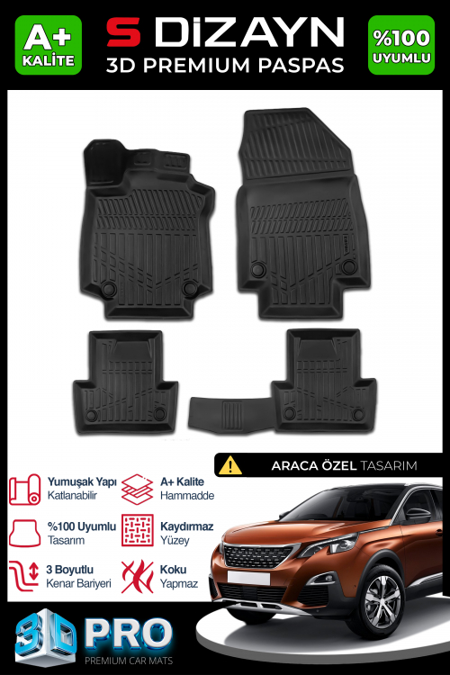 S-Dizayn Peugeot 3008 3D Pro Havuzlu Paspas 2016-2023 A+ Kalite