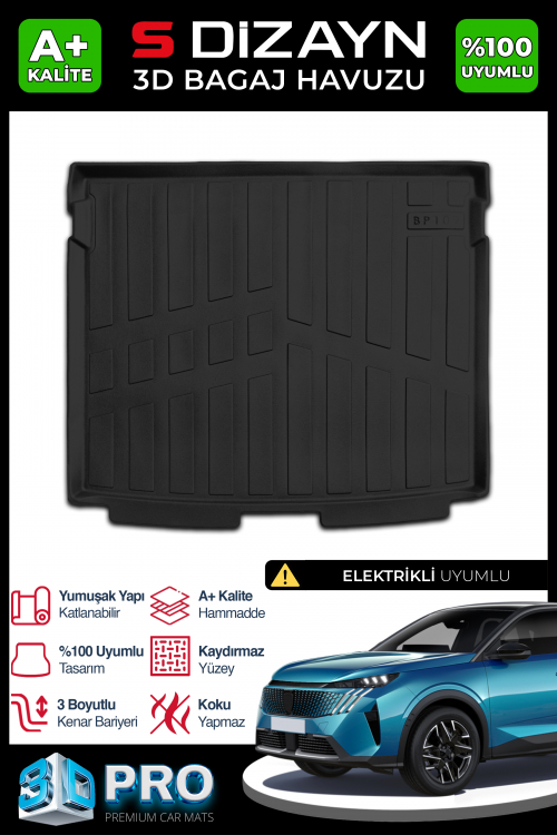 S-Dizayn Peugeot 3008 Elektrikli 3D Pro Bagaj Havuzu 2024 Üzeri A+ Kalite