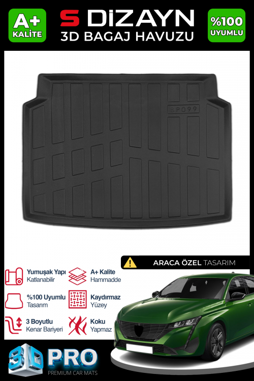 S-Dizayn Peugeot 308 3D Pro Bagaj Havuzu 2022 Üzeri A+ Kalite