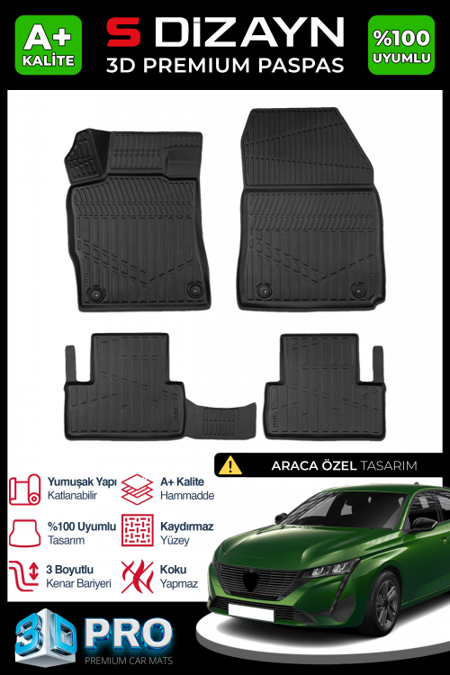 S-Dizayn Peugeot 308 3D Pro Havuzlu Paspas 2021 Üzeri A+ Kalite