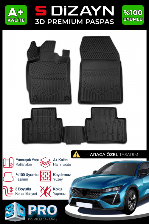 S-Dizayn Peugeot 408 3D Pro Havuzlu Paspas 2023 Üzeri A+ Kalite