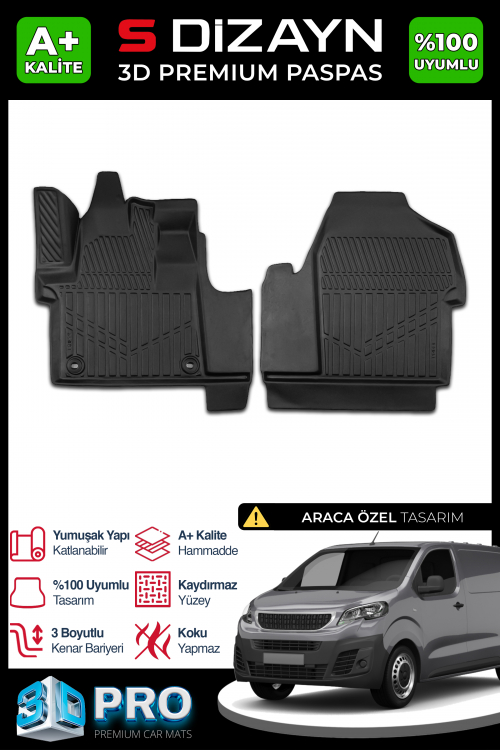 S-Dizayn Peugeot Expert Panelvan 3D Pro Havuzlu Paspas Ön 2'Li 2016 Üzeri A+ Kalite