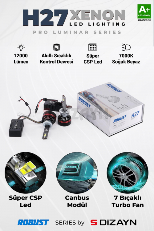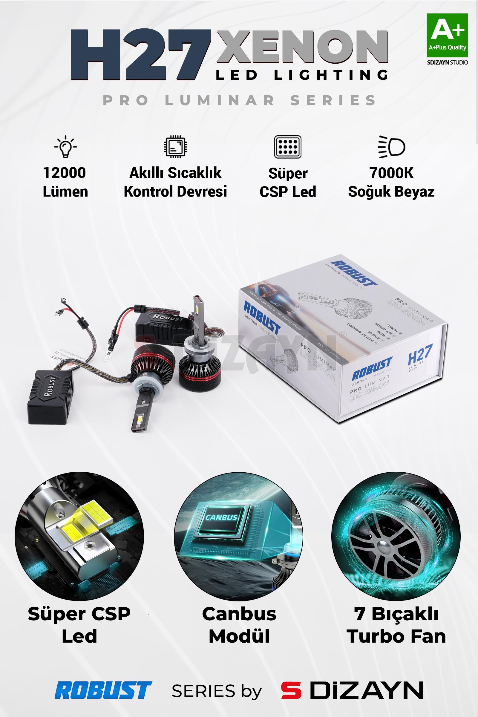 S-Dizayn Pro Luminar H27 Led Xenon / 60W / 12000LM / 7000K A+ Kalite