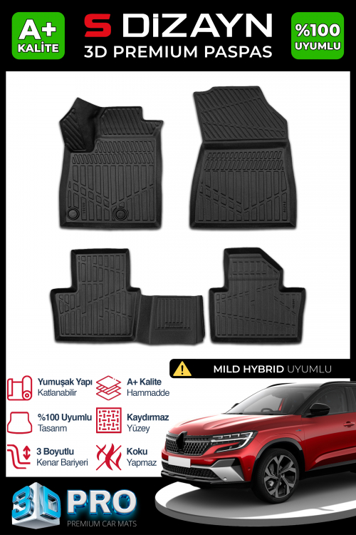 S-Dizayn Renault Austral Mild Hybrid 3D Pro Havuzlu Paspas 2023 Üzeri A+ Kalite
