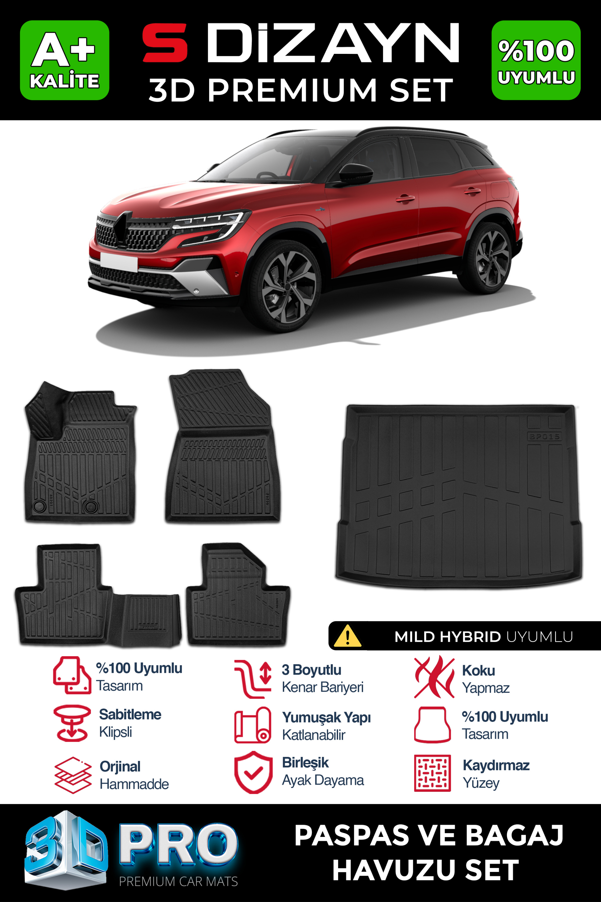 S-Dizayn Renault Austral Mild Hybrid 3D Pro Havuzlu Paspas ve Bagaj Havuzu Seti (2'li SET) 2023 Üzeri A+ Kalite