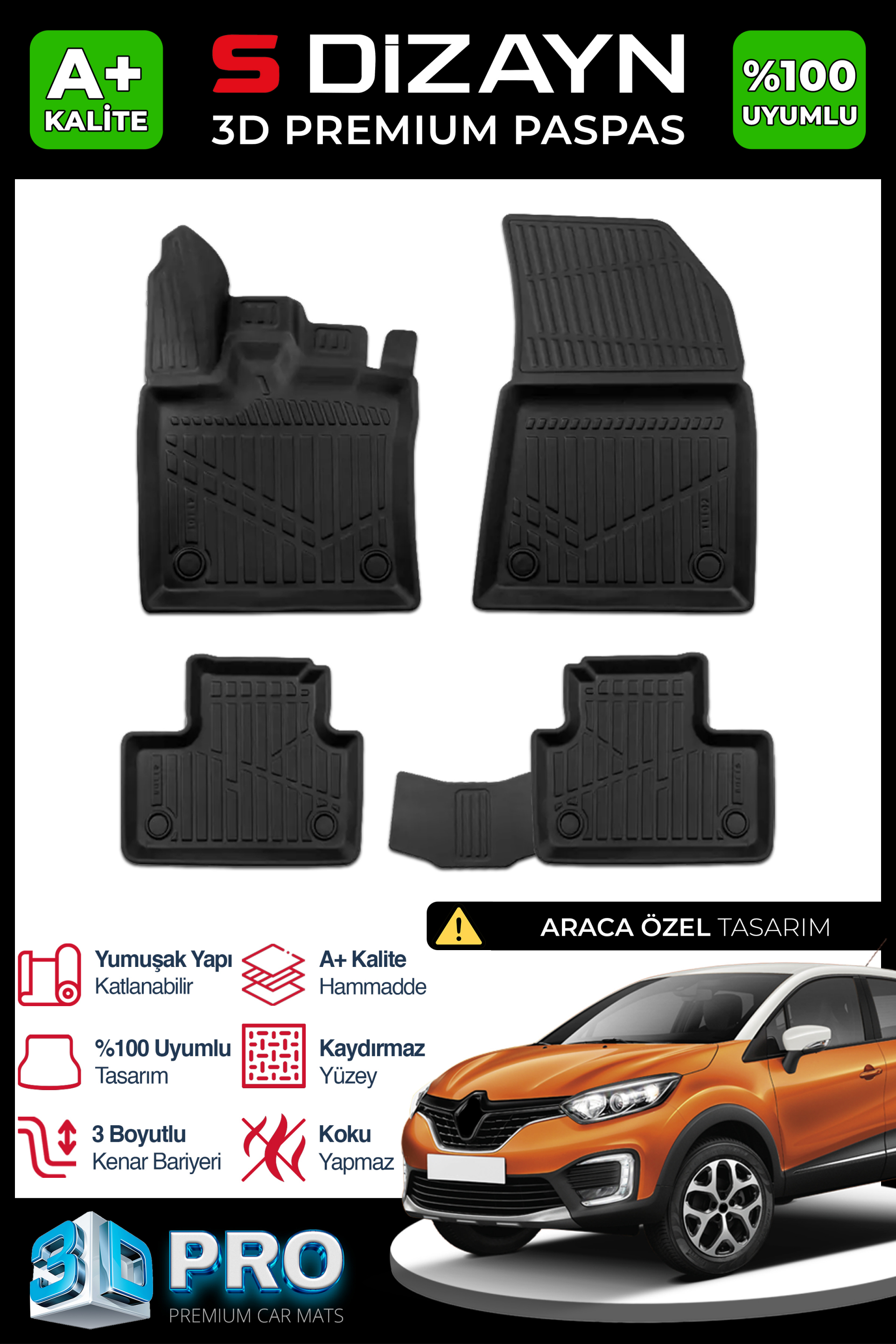 S-Dizayn Renault Captur 3D Pro Havuzlu Paspas 2019 Üzeri A+ Kalite