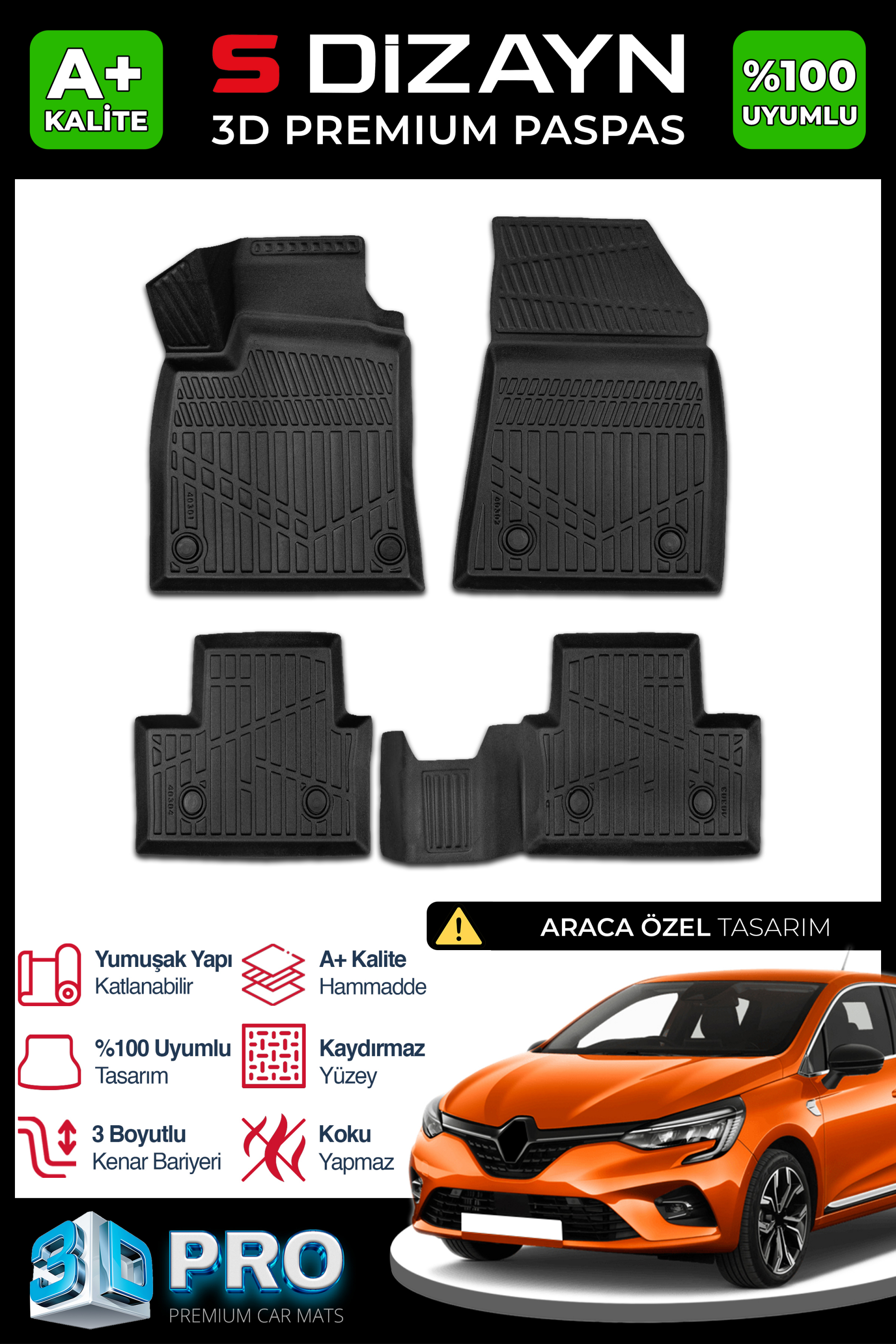 S-Dizayn Renault Clio 5 3D Pro Havuzlu Paspas 2019 Üzeri A+ Kalite