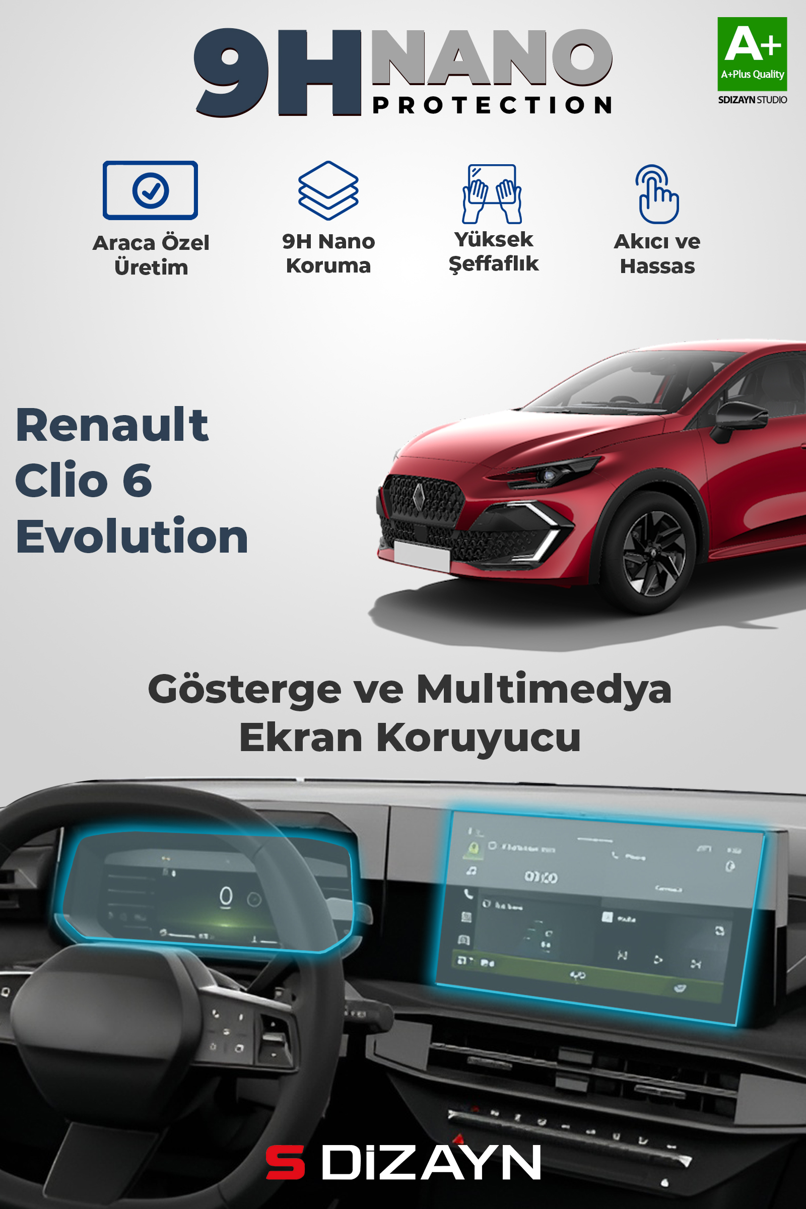 9H Nano Ekran Koruyucu, göstergeler ve dokunmatik paneller gibi hassas yüzeyler zamanla çizilmeye, toza, parmak izlerine ve yansımalara karşı savunmasız hale gelir. 9H Nano Koruyucu, hem ekran hem de araç içi yüzeyleri etkili bir şekilde koruyarak uzun ömürlü kullanım sunar. Yüksek dayanıklılığı, kristal netliğinde görüntü kalitesi ve leke tutmayan yapısıyla, aracınızın iç mekânını her zaman yeni gibi tutmanızı sağlar.
