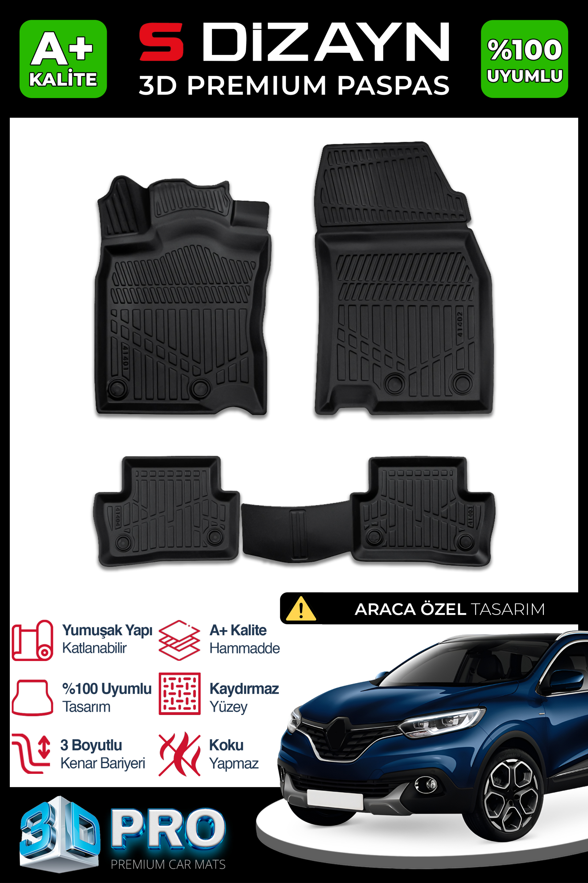 S-Dizayn Renault Kadjar 3D Pro Havuzlu Paspas 2015 Üzeri A+ Kalite