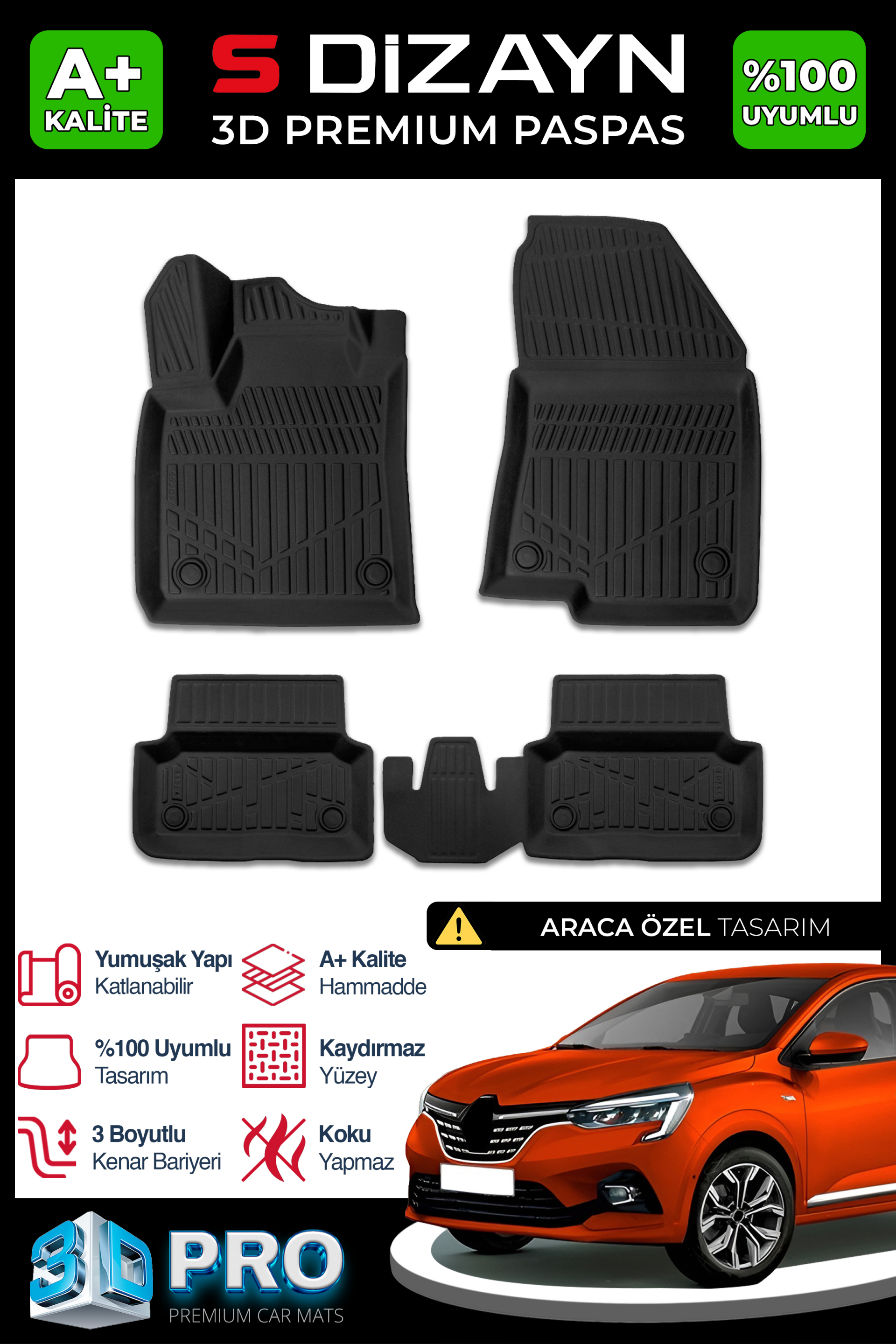 "3D Havuzlu Paspas," her araç modeli için özel olarak ölçülendirilmiş ve tasarlanmıştır. Bu sayede, aracınızın zeminine tam uyum sağlar, boşluk bırakmaz ve kaymadan güvenli bir kullanım sunar.