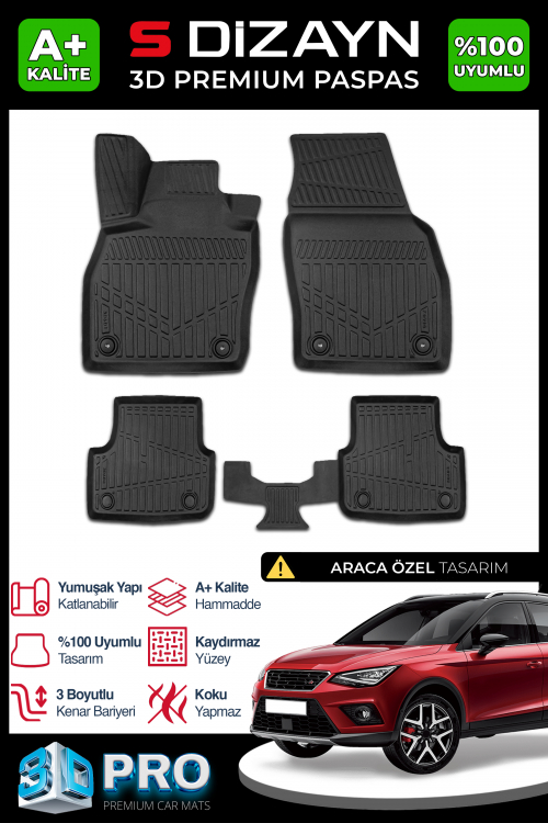 S-Dizayn Seat Arona 3D Pro Havuzlu Paspas 2017 Üzeri A+ Kalite