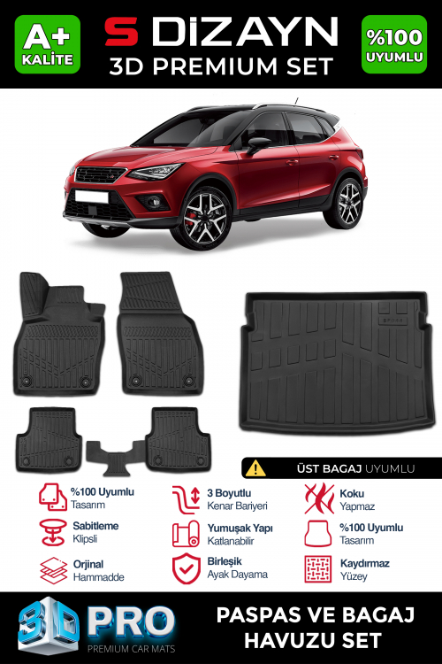 S-Dizayn Seat Arona 3D Pro Havuzlu Paspas ve Üst Bagaj Havuzu Seti (2'li SET) 2017 Üzeri A+ Kalite