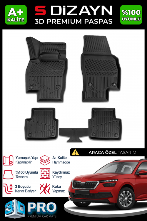S-Dizayn Skoda Kamiq 3D Pro Havuzlu Paspas 2019 Üzeri A+ Kalite
