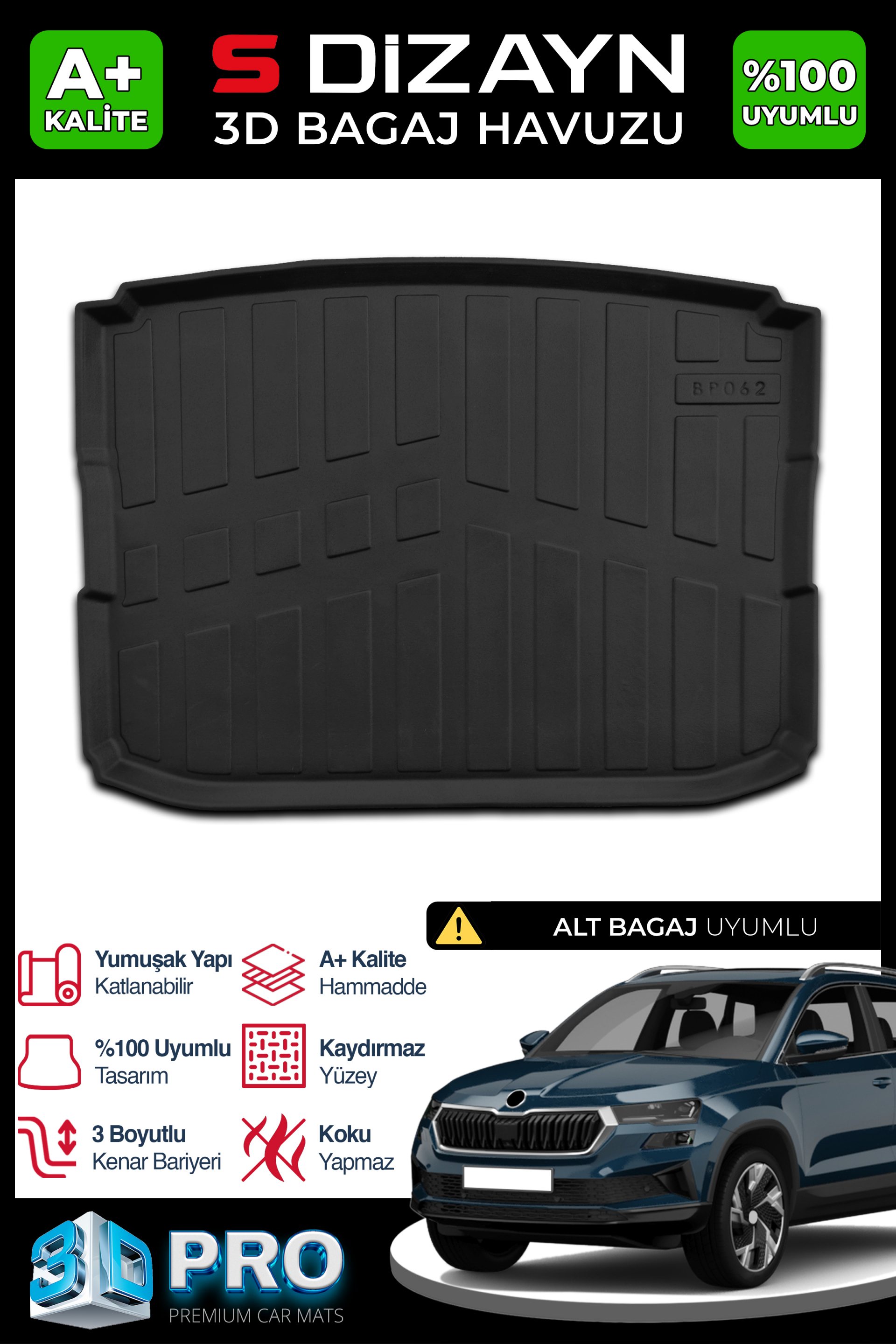 S-Dizayn Skoda Karoq 3D Pro Bagaj Havuzu Alt Bagaj 2017 Üzeri A+ Kalite