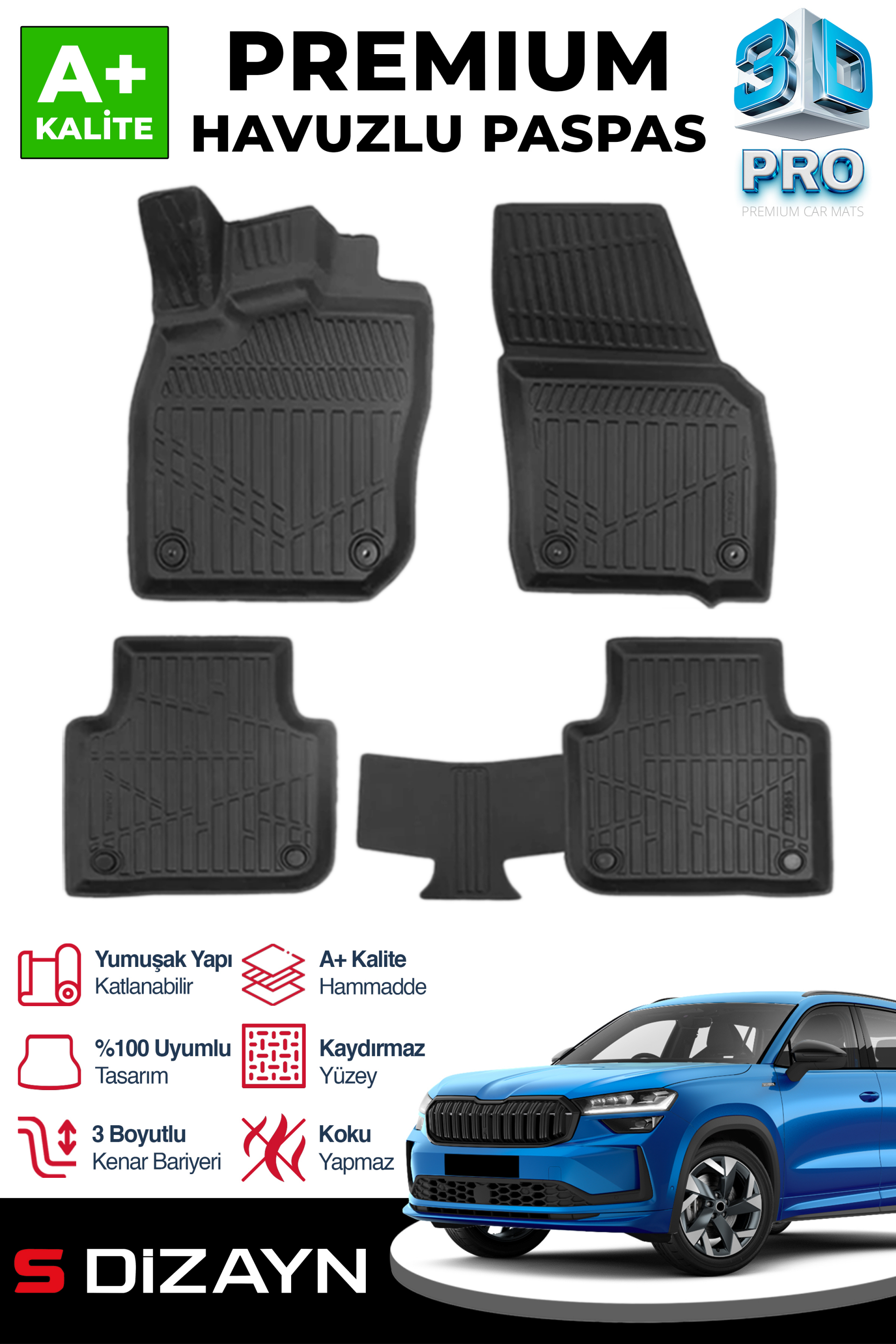 S-Dizayn Skoda Kodiaq 3D Pro Havuzlu Paspas 2024 Üzeri A+ Kalite