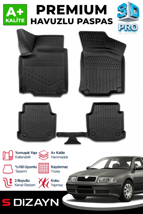 S-Dizayn Skoda Octavıa 3D Pro Havuzlu Paspas 1996-2004 A+ Kalite