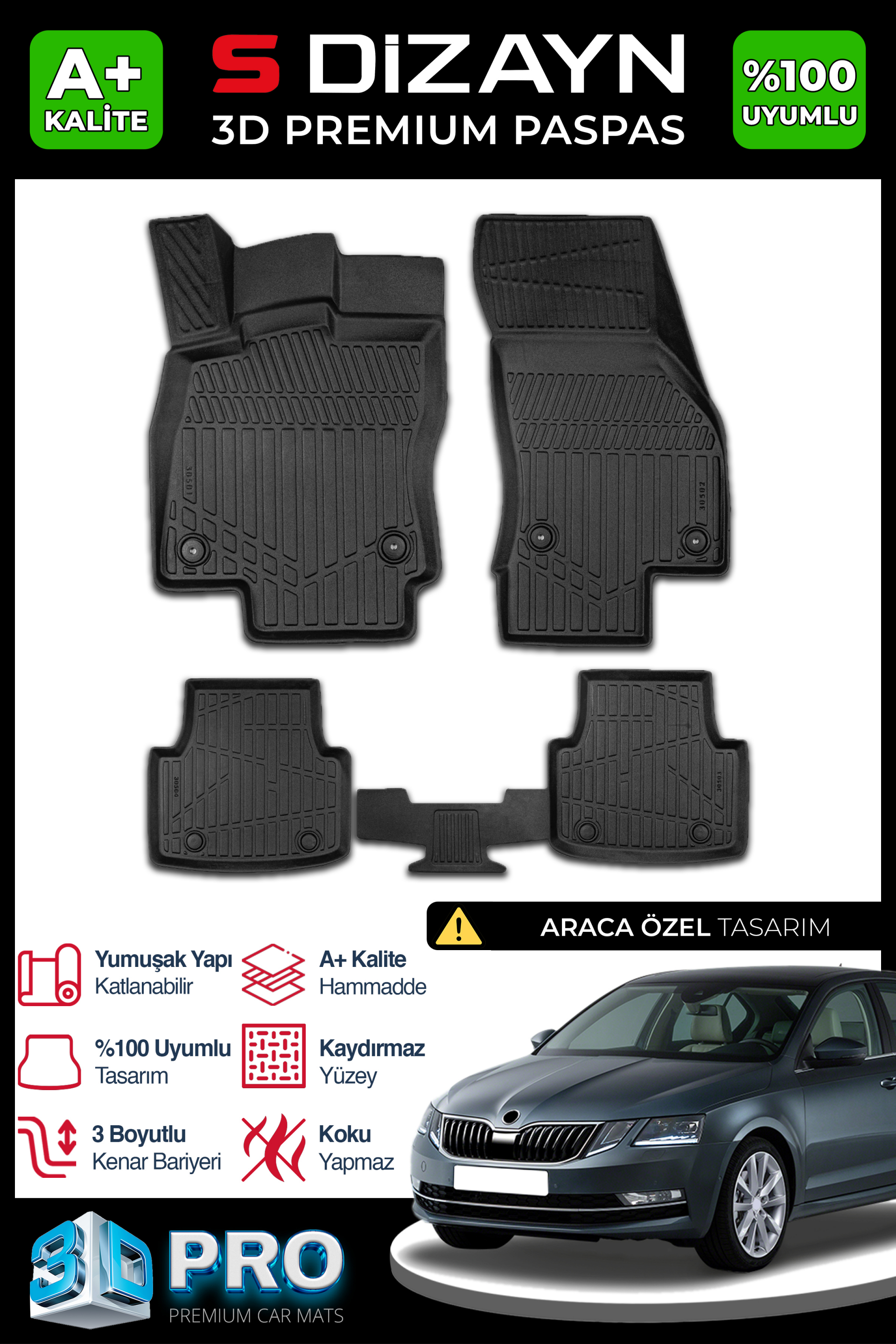 S-Dizayn Skoda Octavia 3D Pro Havuzlu Paspas 2013-2017 A+ Kalite