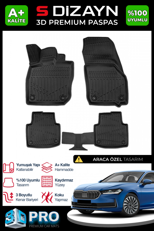 S-Dizayn Skoda SuperB 3D Pro Havuzlu Paspas 2024 Üzeri A+ Kalite