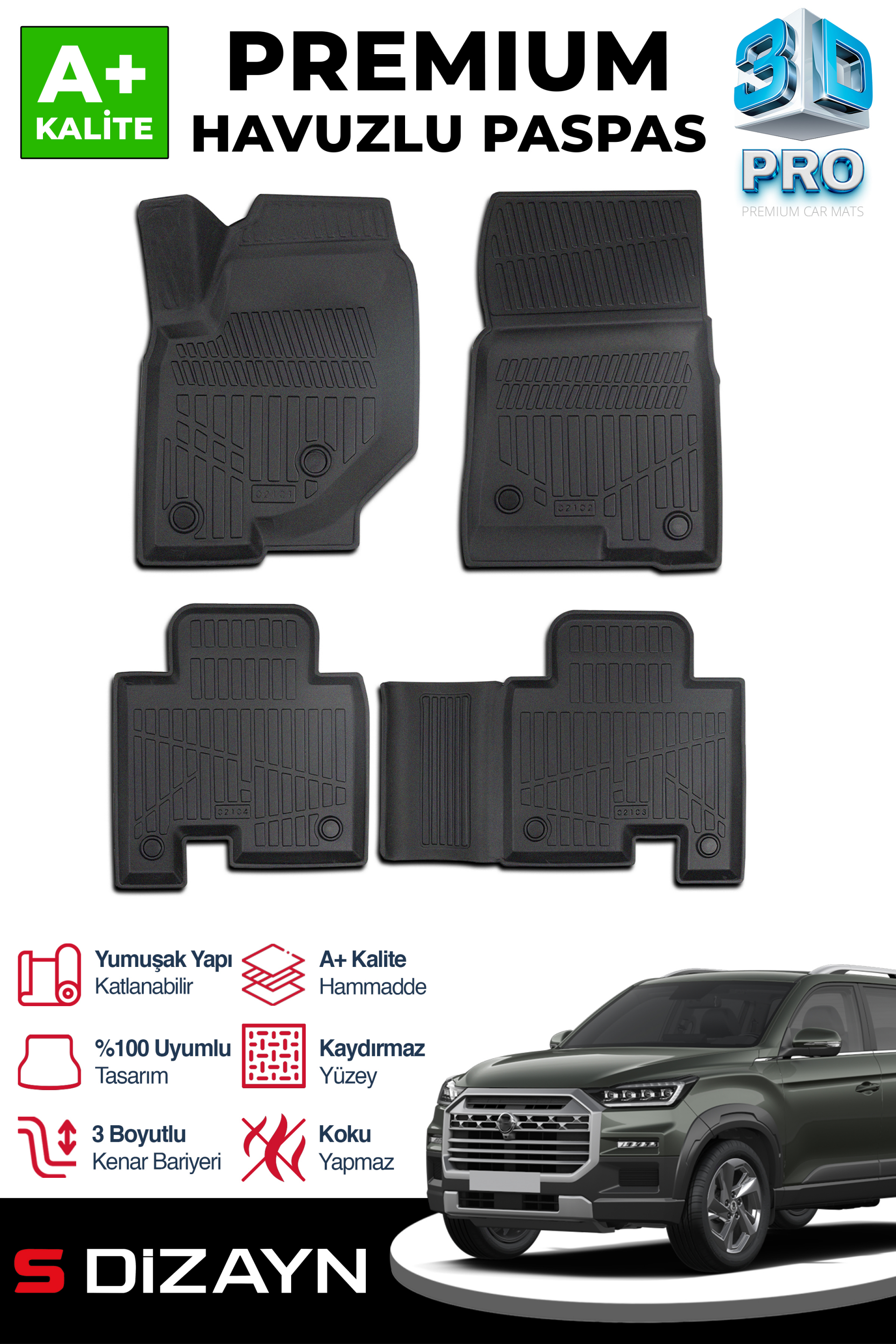 S-Dizayn Ssangyong Musso 3D Pro Havuzlu Paspas 2018 Üzeri A+ Kalite