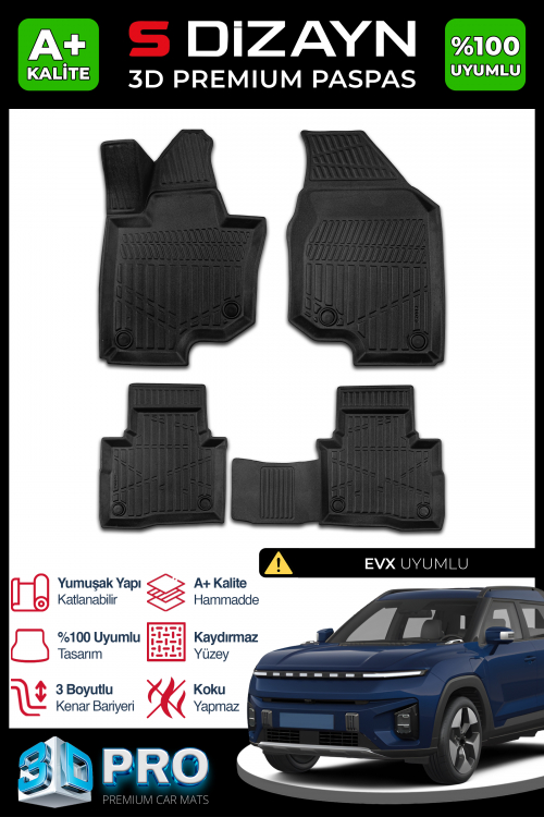 "3D Havuzlu Paspas," her araç modeli için özel olarak ölçülendirilmiş ve tasarlanmıştır. Bu sayede, aracınızın zeminine tam uyum sağlar, boşluk bırakmaz ve kaymadan güvenli bir kullanım sunar.