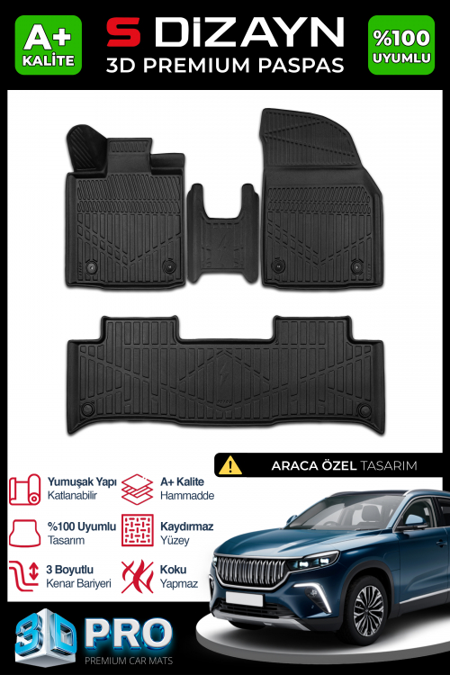 S-Dizayn Togg T10X 3D Pro Havuzlu Paspas 2023 Üzeri A+ Kalite