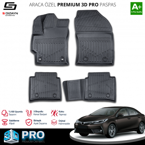 S-Dizayn Toyota Corolla 3D Pro Havuzlu Paspas 2019 Üzeri A+ Kalite