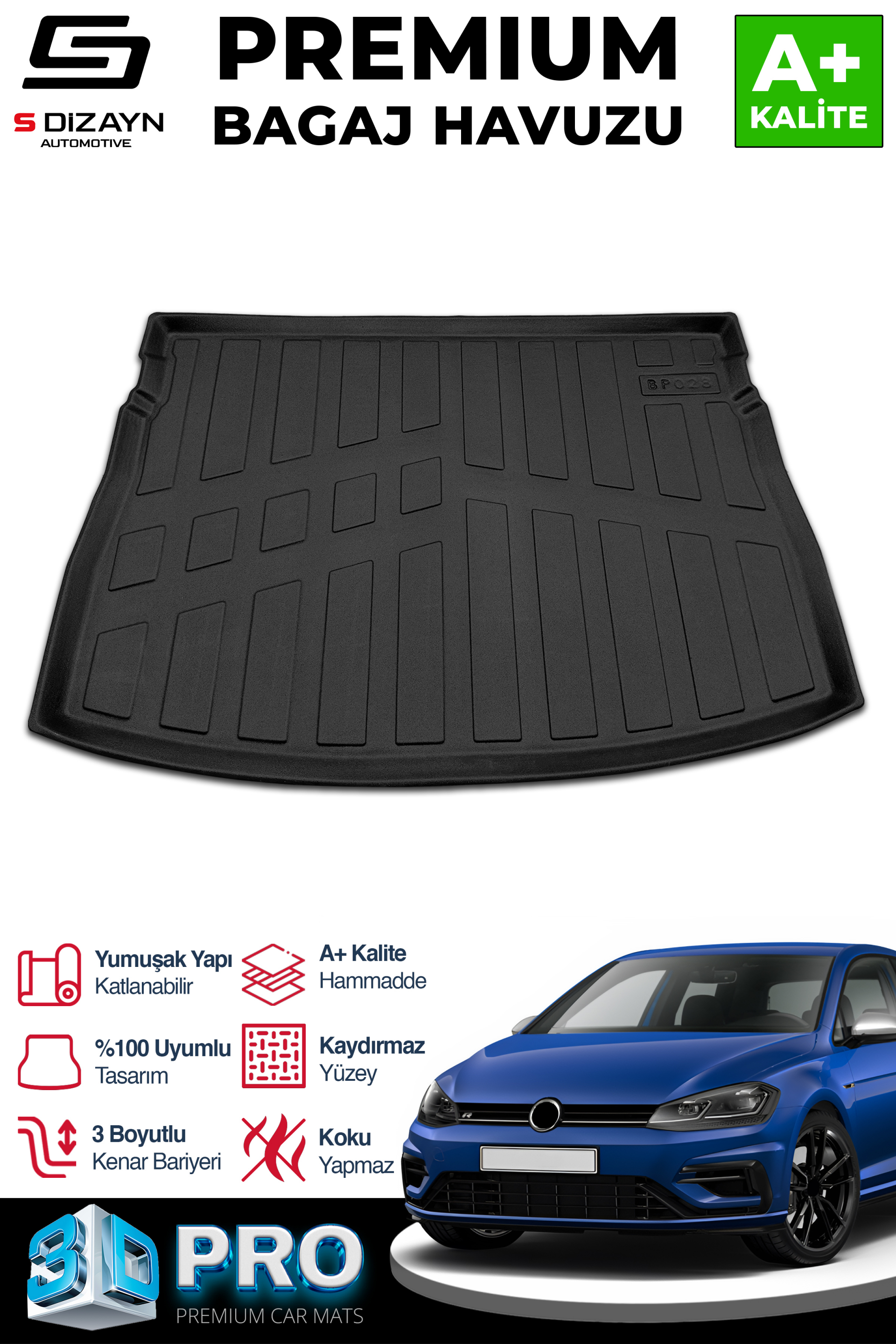 S-Dizayn VW Golf 7 3D Pro Bagaj Havuzu Üst Bagaj 2012-2020 A+ Kalite