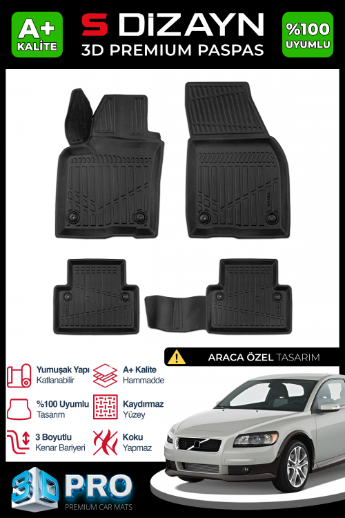 S-Dizayn Volvo C30 3D Pro Havuzlu Paspas 2006-2013 A+ Kalite
