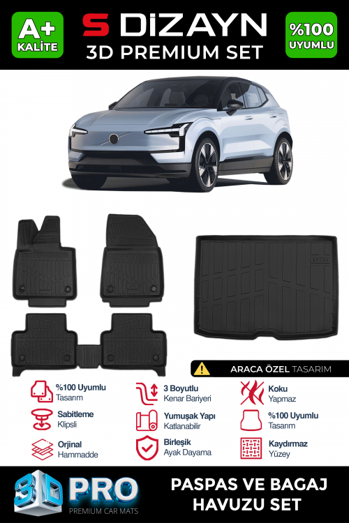 S-Dizayn Volvo EX30 3D Pro Havuzlu Paspas ve Bagaj Havuzu Seti (2'li SET) 2025 Üzeri A+ Kalite
