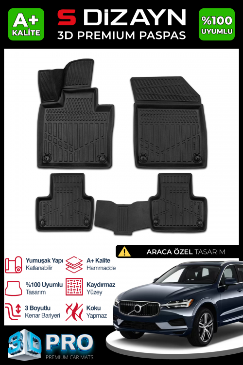 S-Dizayn Volvo XC60 3D Pro Havuzlu Paspas 2017 Üzeri A+ Kalite