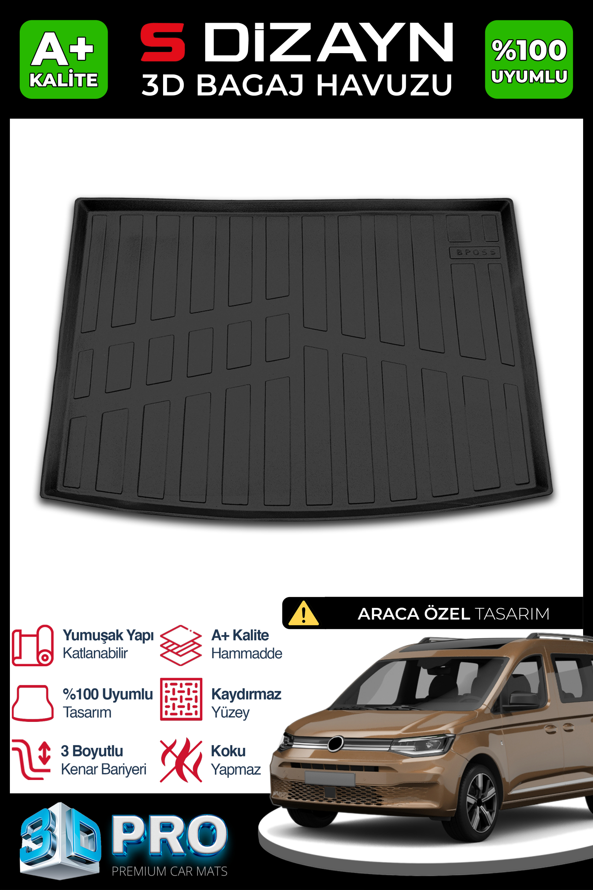 S-Dizayn VW Caddy 3D Pro Bagaj Havuzu 2020 Üzeri A+ Kalite