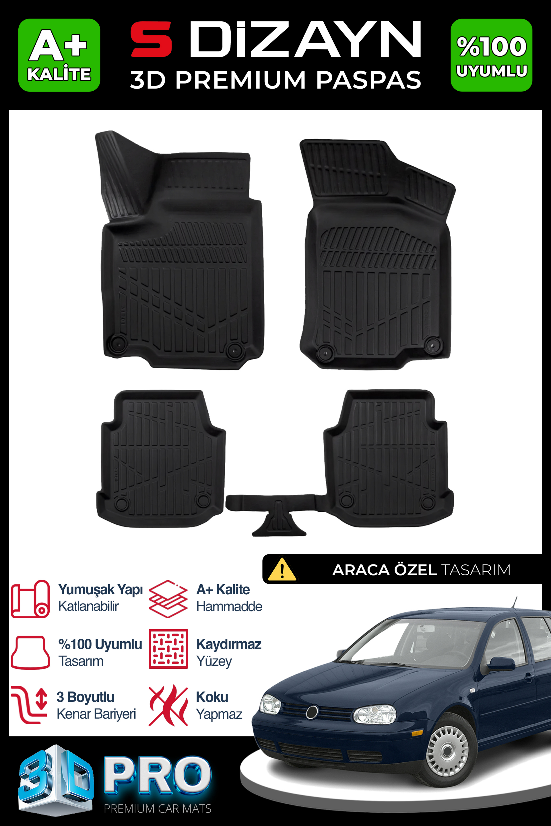S-Dizayn VW Golf 4 3D Pro Havuzlu Paspas 1997-2005 A+ Kalite