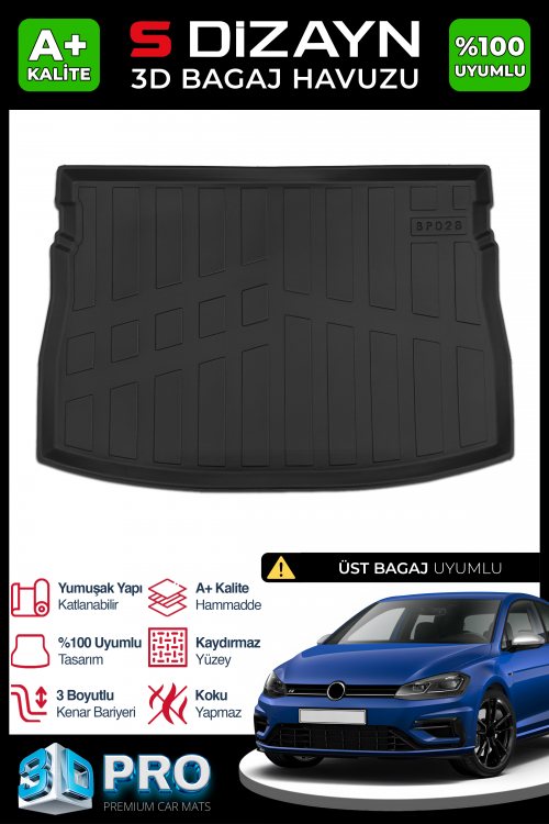 S-Dizayn VW Golf 7 3D Pro Bagaj Havuzu Üst Bagaj 2012-2020 A+ Kalite