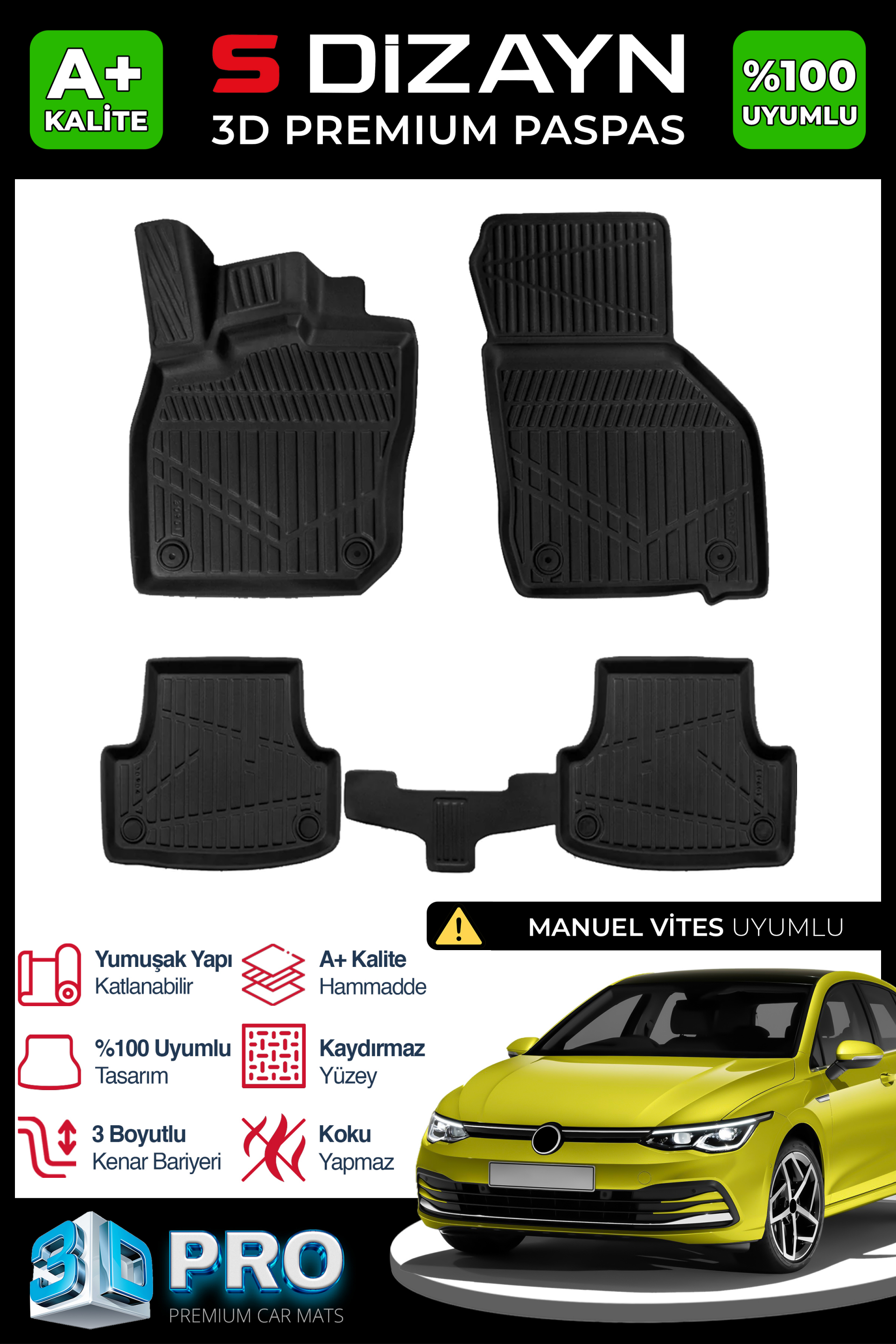 S-Dizayn VW Golf 8 Manuel 3D Pro Havuzlu Paspas 2020-2024 A+ Kalite