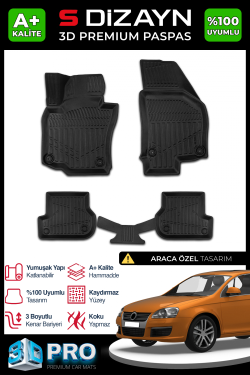 S-Dizayn VW Jetta 3D Pro Havuzlu Paspas 2008-2010 A+ Kalite