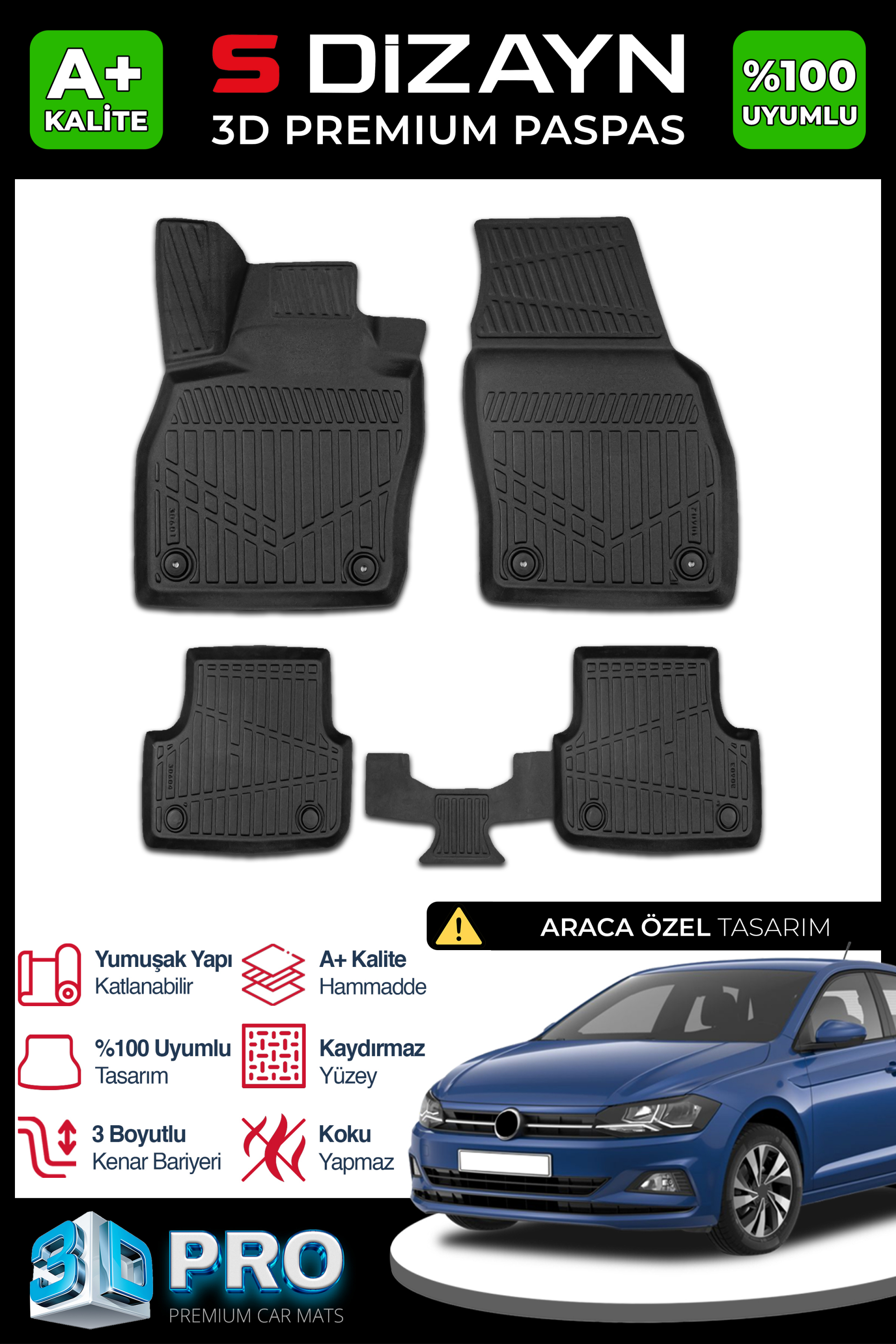 S-Dizayn VW Polo 3D Pro Havuzlu Paspas 2017-2021 A+ Kalite