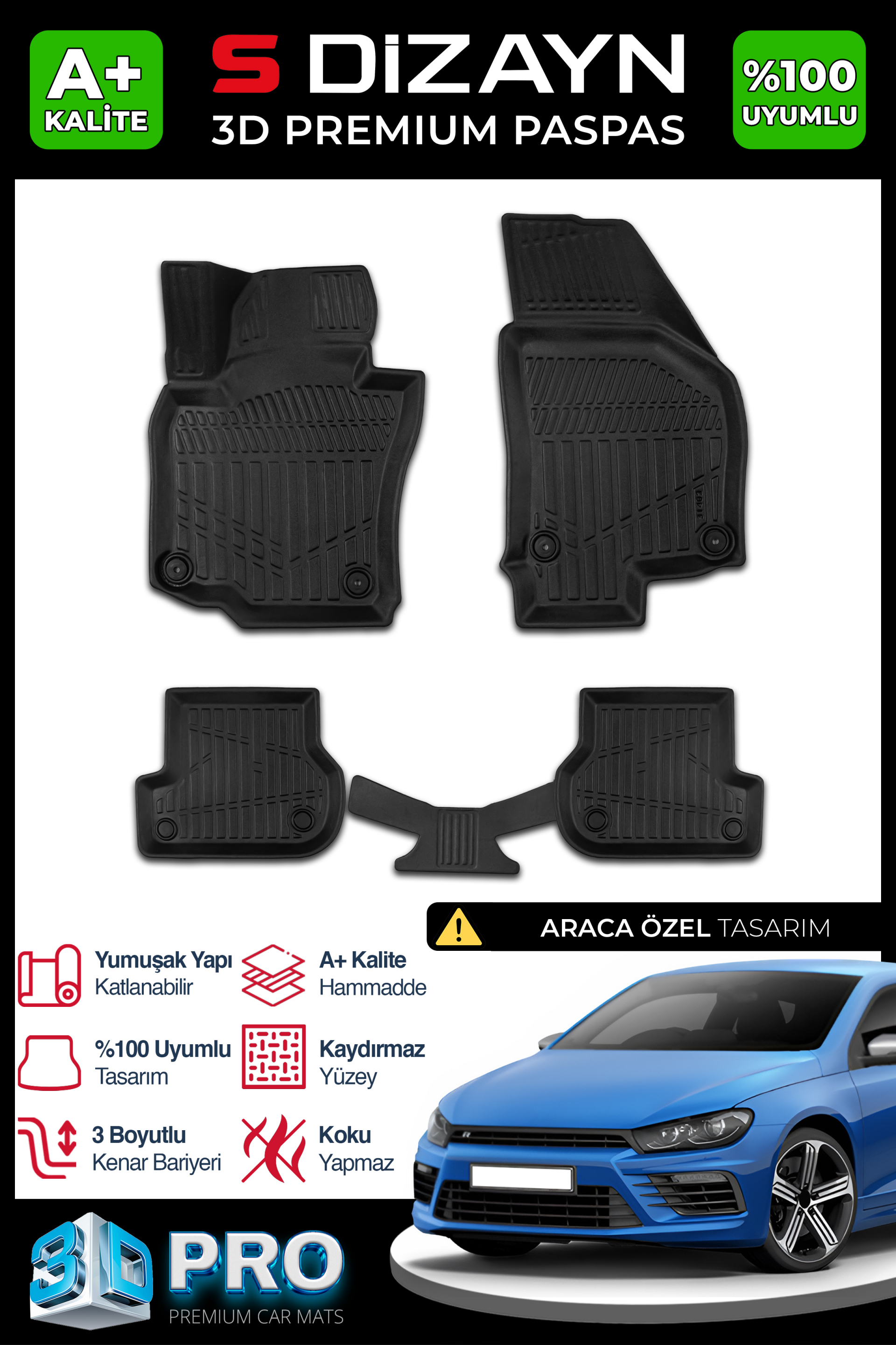 S-Dizayn VW Scirocco 3D Pro Havuzlu Paspas 2008 Üzeri A+ Kalite