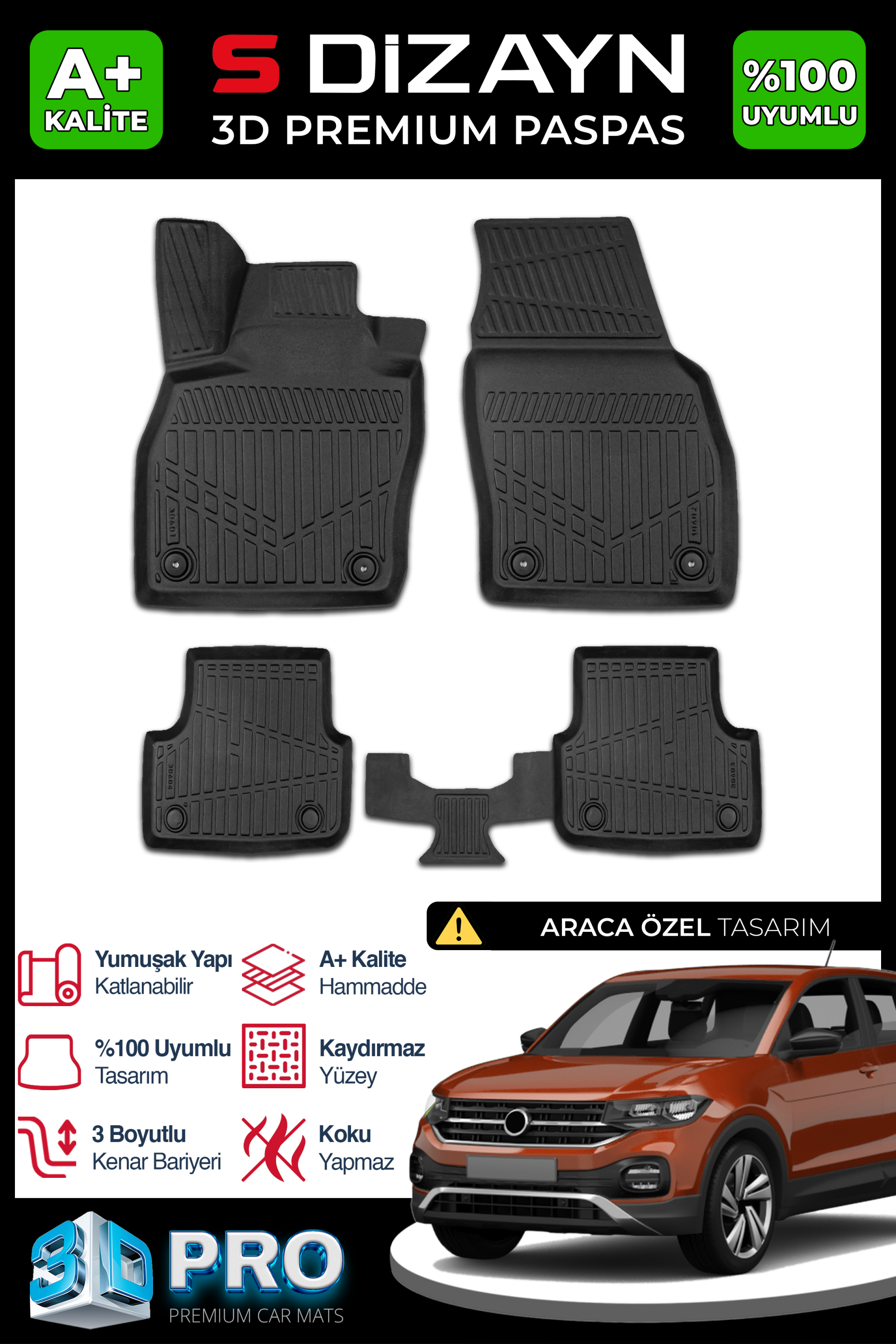 S-Dizayn VW T-Cross 3D Pro Havuzlu Paspas 2019 Üzeri A+ Kalite