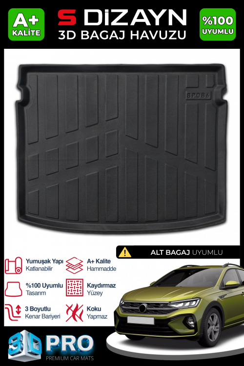 S-Dizayn VW Taigo 3D Pro Bagaj Havuzu Alt Bagaj 2020 Üzeri A+ Kalite