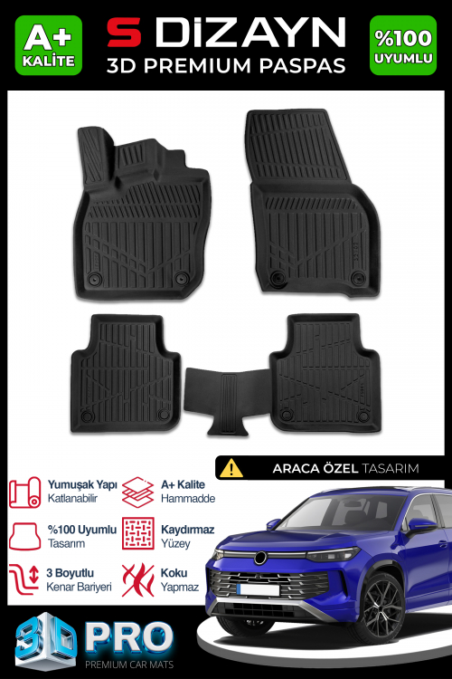 S-Dizayn VW Tayron 3D Pro Havuzlu Paspas 2025 Üzeri A+ Kalite