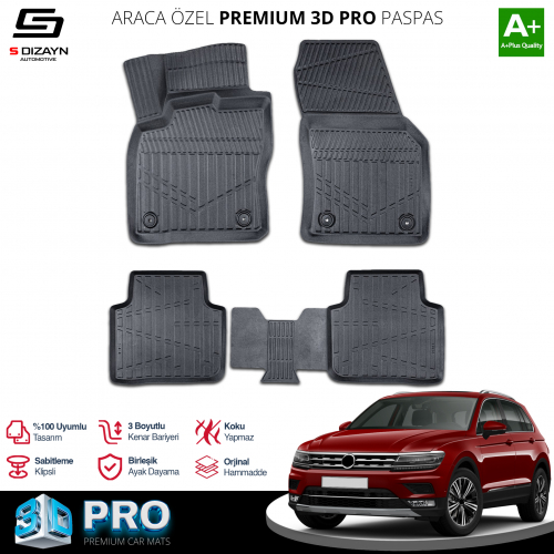 S-Dizayn VW Tiguan Allspace 3D Pro Havuzlu Paspas 2016-2024 A+ Kalite
